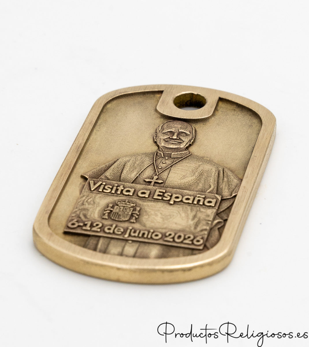 Este llavero estilo placa militar (dog tag) captura la esencia de la Visita Leon XIV a España programada para junio de 2026. En su frontal, presenta un exquisito relieve en 3D que detalla la figura del pontífice junto al escudo nacional y las fechas históricas del evento (6-12 de junio 2026). Es el obsequio ideal para los fieles que desean llevar consigo una muestra tangible de su devoción y recordar este encuentro espiritual en su día a día. Explora más artículos conmemorativos y religiosos de alta calidad en Nuestra Tienda.